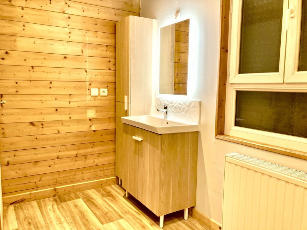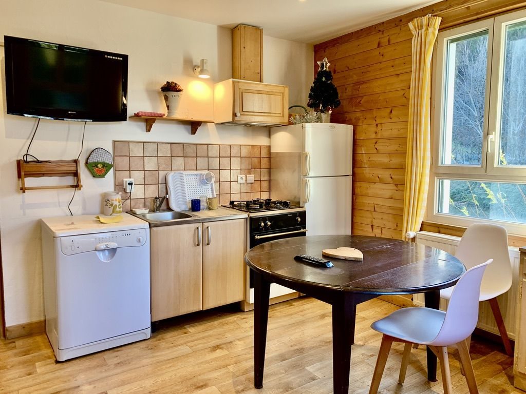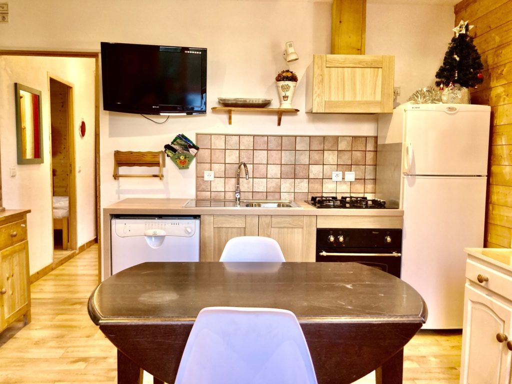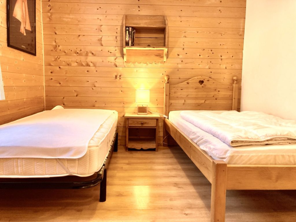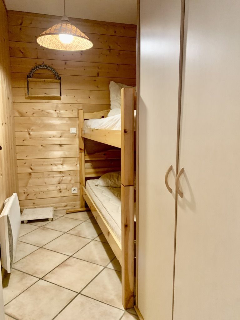 – Appartement 2 pièces + cabine (40 m² environ, rez-de-chaussée) Entrée, pièce à vivre avec cuisine équipée et coin TV, cabine (lits superposés), chambre, salle de douche et WC indépendant.