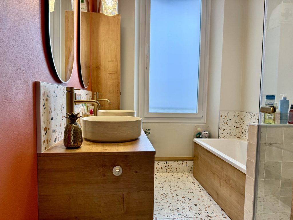 Rez-de-chaussée : Une vaste entrée avec rangements, une salle à manger, une pièce de vie avec coin salon et espace repas ouvrant sur la terrasse, ainsi qu’une cuisine indépendante équipée, avec accès direct à la terrasse et au jardin.